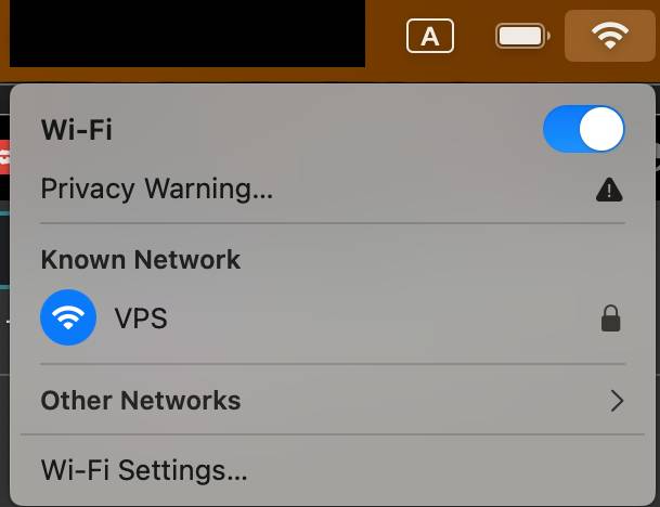 Make sure the WiFi is on, and you are signed into the VPS network.